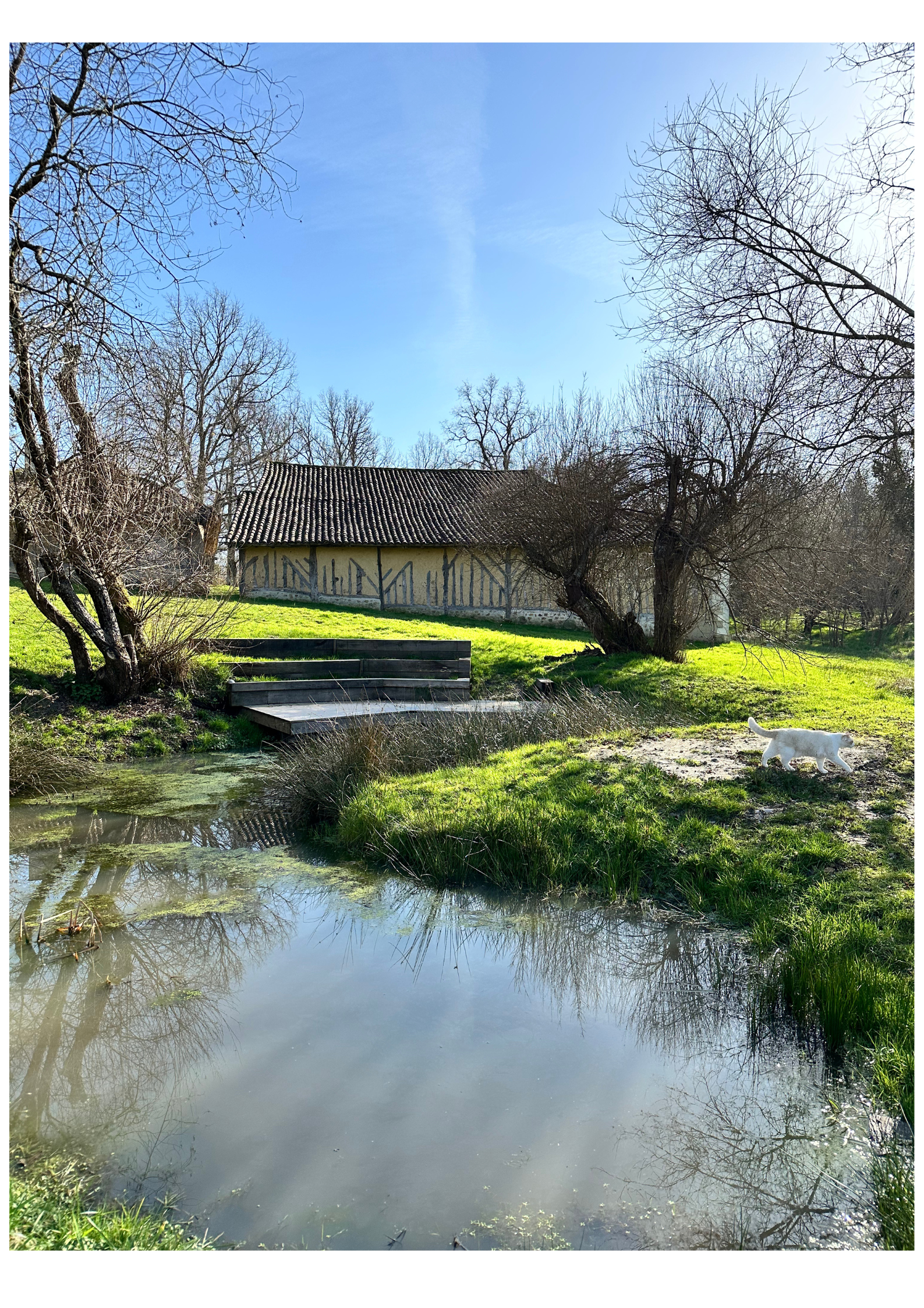 Bâtie en bois et torchis, la Ferme du Parcot est un lieu de sensibilisation à l’architecture paysanne de la Double, à la mutation du monde rural et à la découverte de la flore et de la faune.