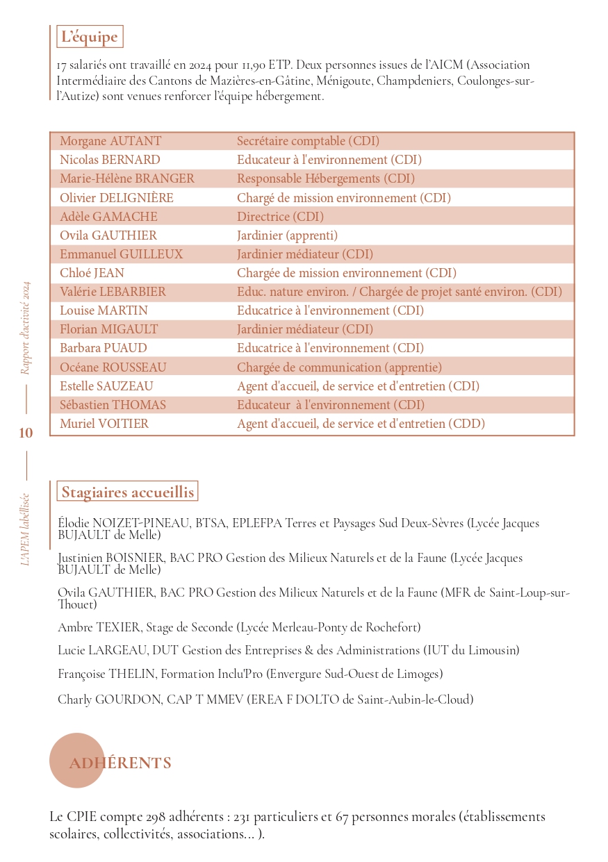 L’Association pour la Promotion de l’Environnement Ménigoutais (APEM) est reconnue d’intérêt général et labellisée Centre Permanent d’Initiatives pour l’Environnement depuis 1988. Notre association s’engage quotidiennement pour l’accompagnement et l’éducation à l’environnement en Deux-Sèvres et en Gâtine.